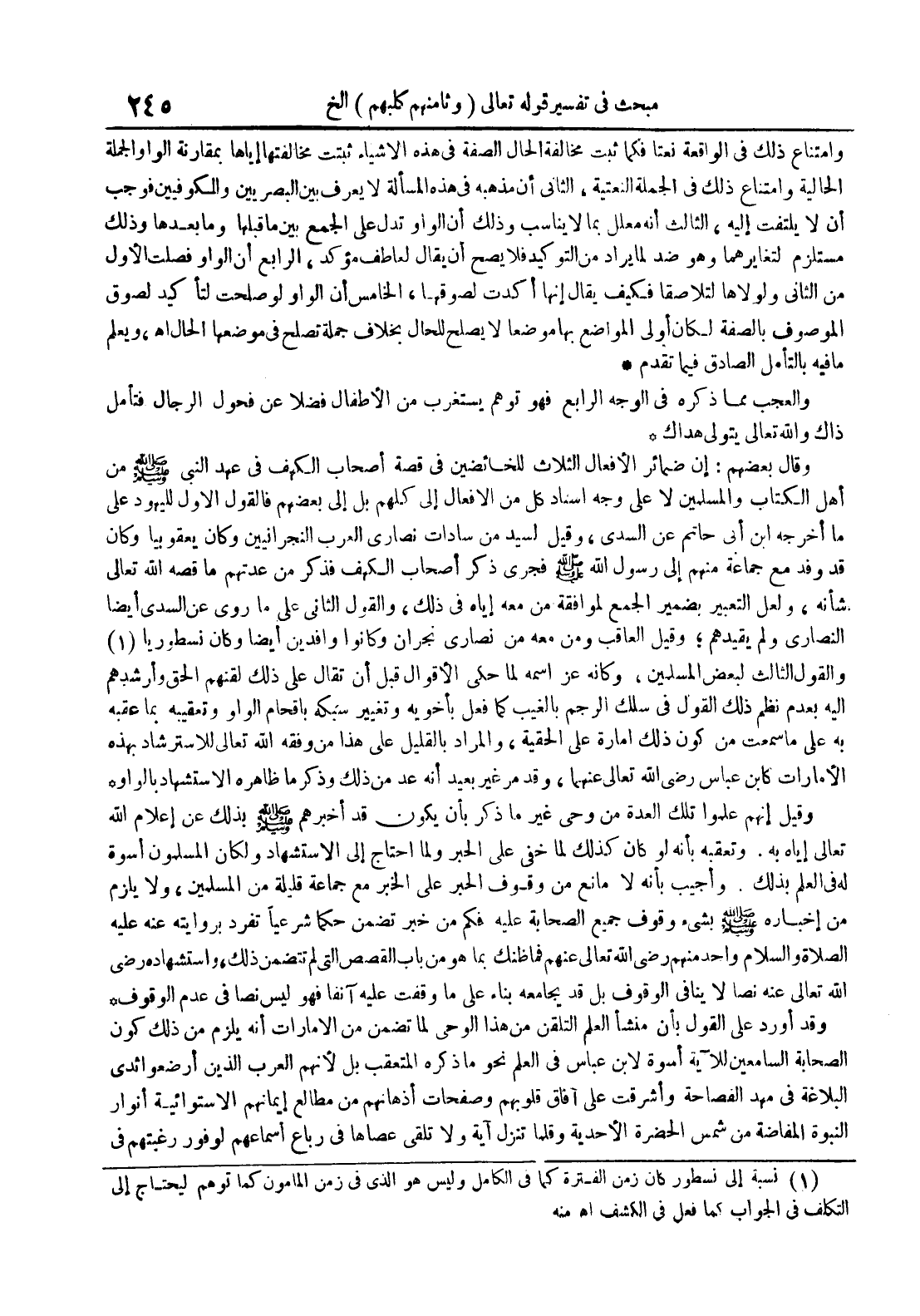 والعجب مما ذكره في الوجه الرابع فهو توهم يستغرب من الأطفال فضلا عن فحول الرجال فتأمل ذاك والله تعالى يتولى هداك