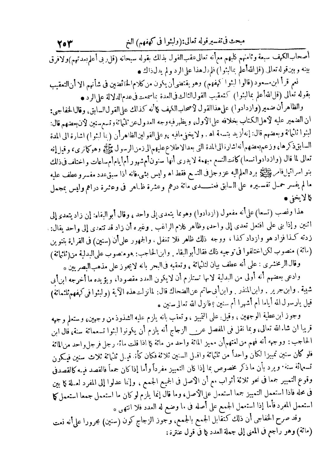 وادعى بعضهم أنه أولى من البدلية لأنها تستلزم أن لا يكون العدد مقصودا ويؤيده ما أخرجه ابن أبي شيبة وابن جرير وابن المنذر وابن أبي حاتم عن الضحاك قال : لما نزلت هذه الآية ولبثوا في كهفهم ثلثمائة قيل يا رسول الله أياما أم أشهرا أم سنين فأنزل الله تعالى سنين
