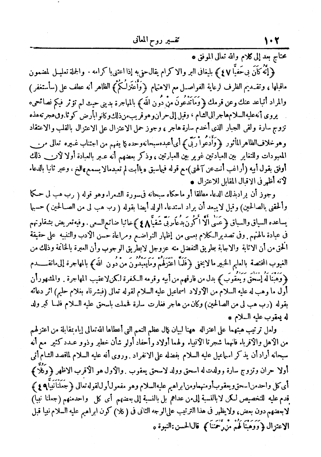 - بليغا في البر والأكرام يقال حفى به اذا اعتنى باكرامه والجملة تعليل المضمون ماقبلها وتقديم الظرف لرعاية الفواصل مع الأهتمام واعتزلكم الظاهر أنه عطف على ساستغفر والمراد اتباعد عنك وعن قومك وما تدعون من دون الله بالمهاجره بدينى حيث لم تؤثر فيكم نصائحى