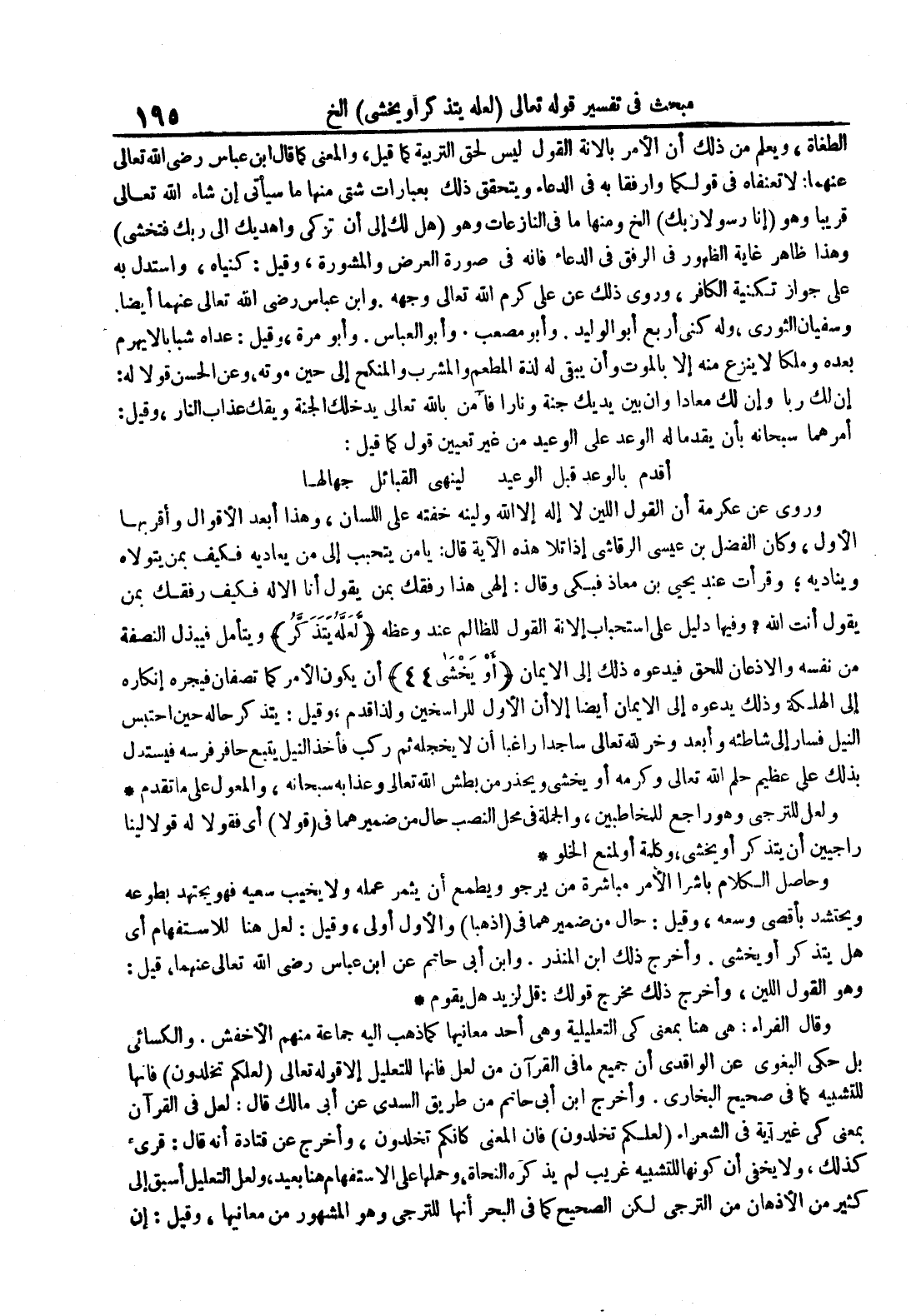 - أن يكون الأمر كما تصفان فيجره انكاره إلى الهلكة وذلك يدعوه إلى الأيمان أيضا إلا أن الأول للراسخين ولذا قدم وقيل : يتذكر حاله حين احتبس النيل فسار إلى شاطئه وابعد وخر لله تعالى ساجدا راغبا أن لا يخجله ثم ركب فاخذ النيل يتبع حافز فرسه فيستدل بذلك على عظيم حلم الله تعالى وكرمه أو يخشى ويحذر من بطش الله تعالى وعذابه سبحانه والمعول على ما تقدم