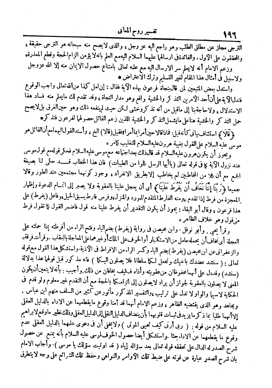 وقرا يحيى وابو نوفل وابن محيصن في رواية يفرط بضم الياء وفتح الراء من أفرطته إذا حملته على العجلة أي نخاف أن يحمله حامل من الاستكبار أو الخوف على الملك أو غيرهما على المعاجلة بالعقاب وقرأت فرقة والزعفرانى عن ابن محيصن يفرط بضم الياء وكسر الراء من الافراط في الاذية واستشكل هذا القول مع قوله تعالى : سنشد عضدك باخيك ونجعل لكما سلطانا فلا يصلون اليكما فانه مذكور قبل قولهما هذا بدلالة سنشد وقد دل على أنهما محفوظان من عقوبته واذاه فكيف يخافان من ذلك وأجيب : بأنه لا يتعين أن يكون المعنى لا يصلون بالعقوبة لجواز أن يراد لا يصلون إلى الزامكما بالحجة مع أن التقدم غير معلوم ولو قدم في الحكاية لا سيما والواو لا تدل على ترتيب والتفسير المذكور ماثور عن كثير من السلف منهم ابن عباس ومجاهد وهو الذي يقتضيه الظاهر وزعم الأمام أنهما قد آمنا وقوع ما يقطعهما عن الاداء بالدليل العقلى إلا أنهما طلبا بما ذكر ما يزيد في ثبات قلوبهما بأن ينضاف الدليل النقلى إلى الدليل العقلى وذلك نظير ما وقع لابراهيم عليه السلام من قوله : ربى ارنى كيف تحيى الموتى ولا يخفى أن في دعوى علمهما بالدليل العقلى عدم وقوع ما يقطعهما عن الاداء جثا واستشكل أيضا حصول الخوف لموسى عليه السلام بأنه يمنع عن حصول شرح الصدر له الدال على تحققه قوله تعالى بعد سؤاله إياه قد اوتيت سؤلك يا موسى واجاب الأمام بأن شرح الصدر عبارة عن قوته على ضبط تلك الأوامر والنواهى وحفظ تلك الشرائع على وجه لا يتطرق