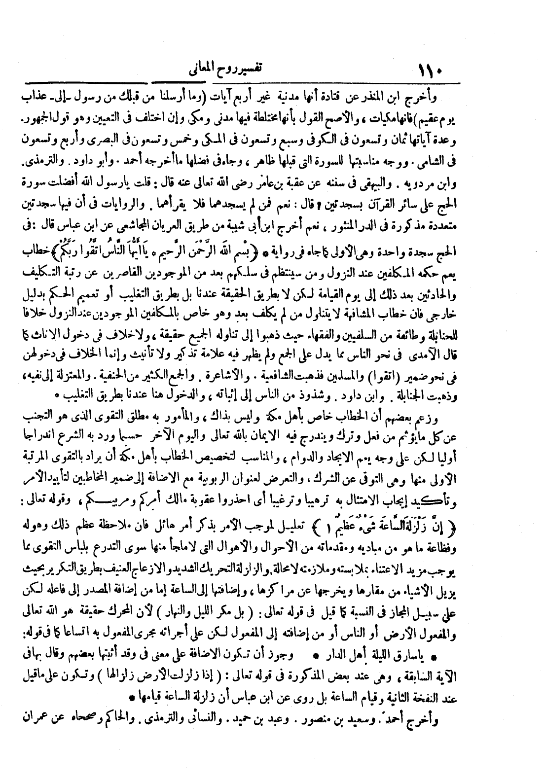 وزعم بعضهم أن الخطاب خاص بأهل مكة وليس بذاك والمأمول به مطلق التقوى الذي هو التجنب عن كل مايؤثم من فعل وترك ويندرج فيه الإيمان بالله تعالى واليوم الآخر حسبما ورد به الشرع اندراجا أوليا لكن على وجه يعم الإيجاد والدوام والمناسب لتخصيص الخطاب بأهل مكة أن يراد بالتقوى المرتبة الأولى منها وهو التوقي عن الشرك والتعرض لعنوان الربوبية مع الإضافة إلى ضمير المخاطبين لتأييد الأمر وتأكيد إيجاب الإمتثال به ترهيبا وترغيبا أي احذروا عقوبة مالك أمركم ومريبكم وقوله تعالى : إن زلزلة الساعة شيء عظيم