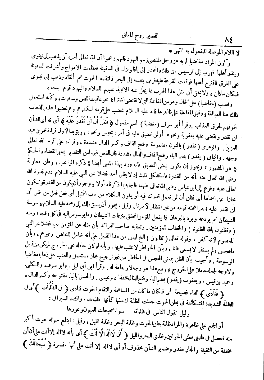 فنادى الفاء فصيحة أي فكان ما كان من المساهمة والتقام الحوت فنادى في الظلمات أي في الظلمة الشديدة المتكاثفة في بطن الحوت جعلت الظلمة لشدتها كأنها ظلمات وأنشد السيرافي : وليل تقول الناس في ظلماته سواء صحيحات العيون وعورها أو الجمع على ظاهره والمراد ظلمة بطن الحوت وظلمة البحر وظلمة الليل وقيل : ابتلع حوته حوت أكبر منه فحصل في ظلمتي بطني الحوتين وظلمتي البحر والليل أن لا إله إلا أنت أي بأنه لا إله إلا أنت على أن أن مخففة من الثقيلة والجار مقدر وضمير الشأن محذوف أو أي لا إله إلا أنت على أنها مفسرة سبحانك