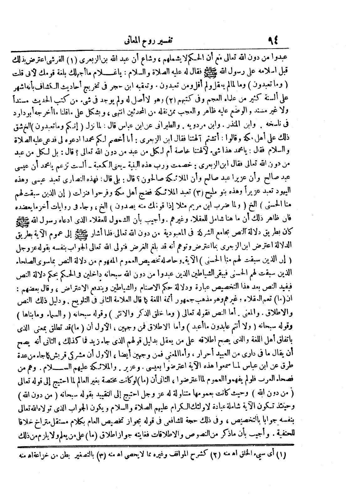 عبدوا من دون الله تعالى مع أن الحكم لا يشملهم وشاع أن عبد الله بن الزبعري القرشي اعترض بذلك قبل إسلامه على رسول الله صلى الله عليه و سلم فقال له عليه الصلاة و السلام : يا غلام ما أجهلك بلغة قومك لأبي قلت وما تعبدون وما لما لم يعقل ولم أقل ومن تعبدون وتعقبه ابن حجر في تخريج أحاديث الكشاف بأنه أشهر على ألسنة كثير من علماء العجم وفي كتبهم وهو لا أصل له ولم يوجد في شيء من كتب الحديث مسندا ولا غير مسند والوضع عليه ظاهر والعجب ممن نقله من المحدثين انتهى ويشكل على ما قلنا ما أخرجه أبو داود في ناسخه وابن المنذر وابم مردوية والطبراني عن ابن عباس قال : لما نزل إنكم وما تعبدون الخ شق ذلك على أهل مكة وقالوا : أتشتم آلهتنا فقال ابن الزبغري : أنا أخصم لكم محمدا أدعوه لي فدعي عليه الصلاة و السلام فقال : يا محمد هذا شيء لآلهتنا خاصة أم لكل من عبد من دون الله تعالى قال : بل لكل من عبد من دون الله تعالى فقال ابن الزبعري : خصمت ورب هذه البنية يعني الكعبة ألست تزعم يا محمد أن عيسى عبد صالح وأن عزيرا عبد صالح وأن الملائكة صالحون قال : بلى قال : فهذه النصارى تعبد عيسى وهذه اليهود تعبد عزيرا وهذه بنو مليح تعبد الملائكة فضج أهل مكة وفرحوا فنزلت إن الذين سبقت لهم منا الحسنة الخ ولما ضرب ابن مريم مثلا إذا قومك منه يصدون الخ وجاء في روايات أخر ما يعضده فإن ظاهر ذلك أن ما هنا شامل للعقلاء وغيرهم وأجيب بأن الشمول للعقلاء الذي ادعاه رسول الله صلى الله عليه و سلم كان بطريق دلالة النص بجامع الشركة في المعبودية من دون الله تعالى فلما أشار صلى الله عليه و سلم إلى عموم الآية بطريق الدلالة اعترض ابن الزبعري بما اعترض وتوهم أنه قد بلغ الغرض فتولى الله تعالى الجواب بنفسه بقوله عز و جل إن الذين سبقت لهم منا الحسنى الآية وحاصله تخصيص العموم المفهوم من دلالة النص بما سوى الصلحاء الذين سبقت لهم الحسنى فيبقى الشياطين الذين عبدوا من دون الله سبحانه داخلين في الحكم بحكم دلالة النص فيفيد النص بعد هذا التخصيص عبارة ودلالة حكم الأصنام والشياطين ويندفع الإعتراض وقال بعضهم : إن ما تعم العقلاء وغيرهم وهو مذهب جمهور أئمة اللغة كما قال العلامة الثاني في التلويح ودليل ذلك النص والإطلاق والمعنى أما النص فقوله تعالى وما خلق الذكر والأنثى وقوله سبحانه والسماء وما بناها وقوله سبحانه ولا أنتم عابدون ما أعبد وأما الإطلاق فمن وجهين الأول أن ما قد تطلق بمعنى الذي باتفاق أهل اللغة والذي يصح إطلاقه على من يعقل بدليل قولهم الذي جاء زيد فما كذلك الثاني أنه يصح أن يقال ما في داري من العبيد أحرار وأما المعنى فمن وجهين أيضا الأول أن مشركي قريش كما جاء من عدة طريق عن ابن عباس لما سمعوا هذه الآية اعترضوا بعيسى وعزير والملائكة عليهم السلام وهم من فصحاء العرب فلو لم يفهموا العموم لما اعترضوا الثاني أن ما مختصة بغير العالم لما احتيج إلة قوله تعالى من دون الله وحيث كانت بعمومها متنازلة له عز و جل احتيج إلى التقييد بقوله سبحانه من دون الله وحينئذ تكون الآية شاملة عبادة لأولئك الكرام عليهم الصلاة والسلام ويكون الجواب الذي تولاه الله تعالى بنفسه جوابا بالتخصيص وفي ذلك حجة للشافعي في قوله بجواز تخصيص العام بكلام مستقل متراخ خلافا للحنفية وأجيب بأن ما ذكر من النصوص والإطلاقات فغايته جواز إطلاق ما على من يعلم ولا يلزم من ذلك