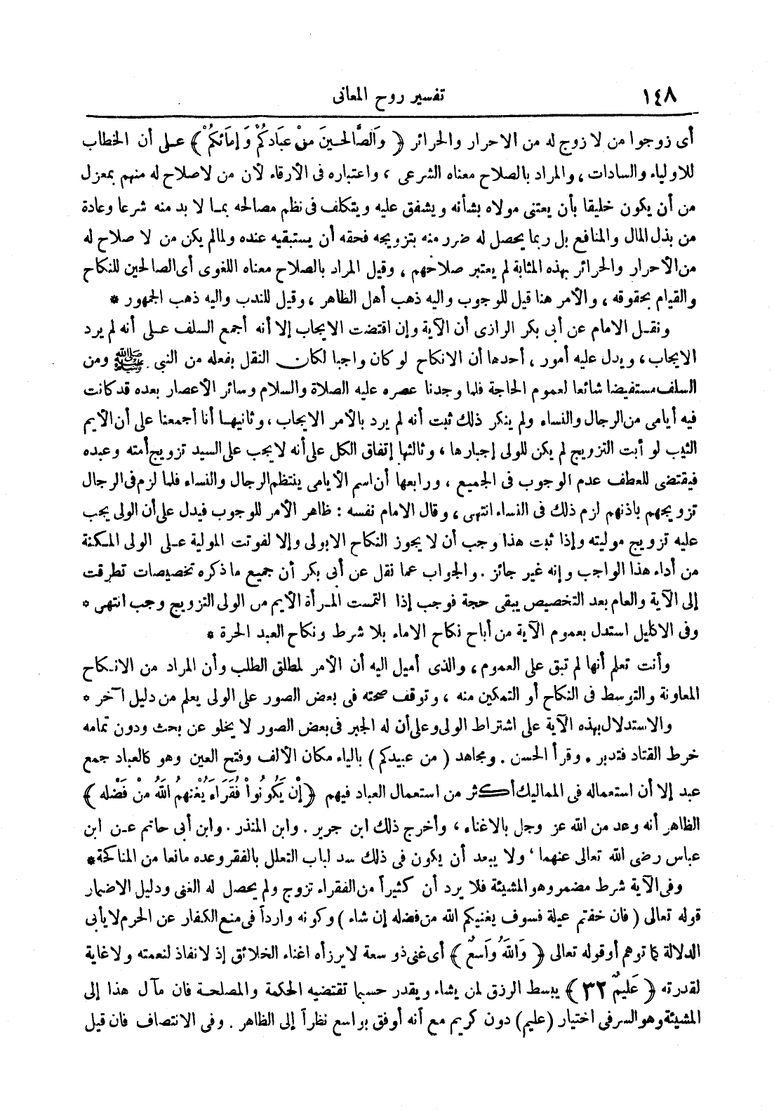 وأنت تعلم أنها لم تبق على العموم والذي أميل إليه أن الأمر لمطلق الطلب وأن المراد من الإنكاح المعاونة والتوسط في النكاح أو التمكين منه وتوقف صحته في بعض الصور على الولي يعلم من دليل آخر