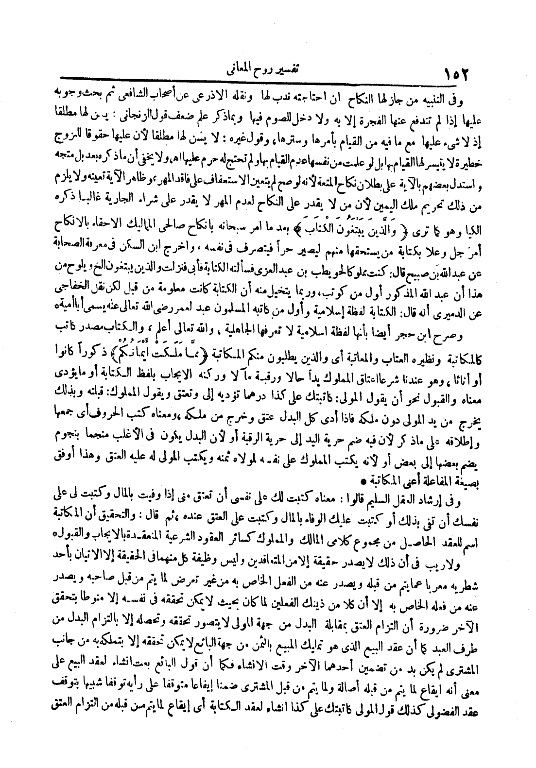 وصرح ابن حجر أيضا بأنها لفظة إسلامية لا تعرفها الجاهلية والله تعالى أعلم والكتاب مصدر كاتب كالمكاتبة ونظيره العتاب والمعاتبة أي والذين يطلبون منكم المكاتبة مما ملكت أيمانكم ذكورا كانوا أو إناثا وهو عندنا شرعا إعتاق المملوك يدا حالا ورقبة مآلا وركنه الإيجاب بلفظ الكتابة أو ما يؤدي معناه والقبول نحو أن يقول المولى : كاتبتك على كذا درهما تؤديه إلي وتعتق ويقول المملوك : قبلته وبذلك يخرج من يد المولى دون ملكه فإذا أدى كل البدل عتق وخرج من ملكه ومعناه كتب الحروف أي جمعها وإطلاقه على ما ذكر لأن فيه ضم حرية اليد إلى حرية الرقبة أو لأن البدل يكون في الأغلب منجما بنجوم يضم بعضها إلى بعض أو لأنه يكتب المملوك على نفسه لمولاه ثمنه ويكتب المولى له عليه العتق وهذا أوفق بصيغة المفاعلة أعني المكاتبة