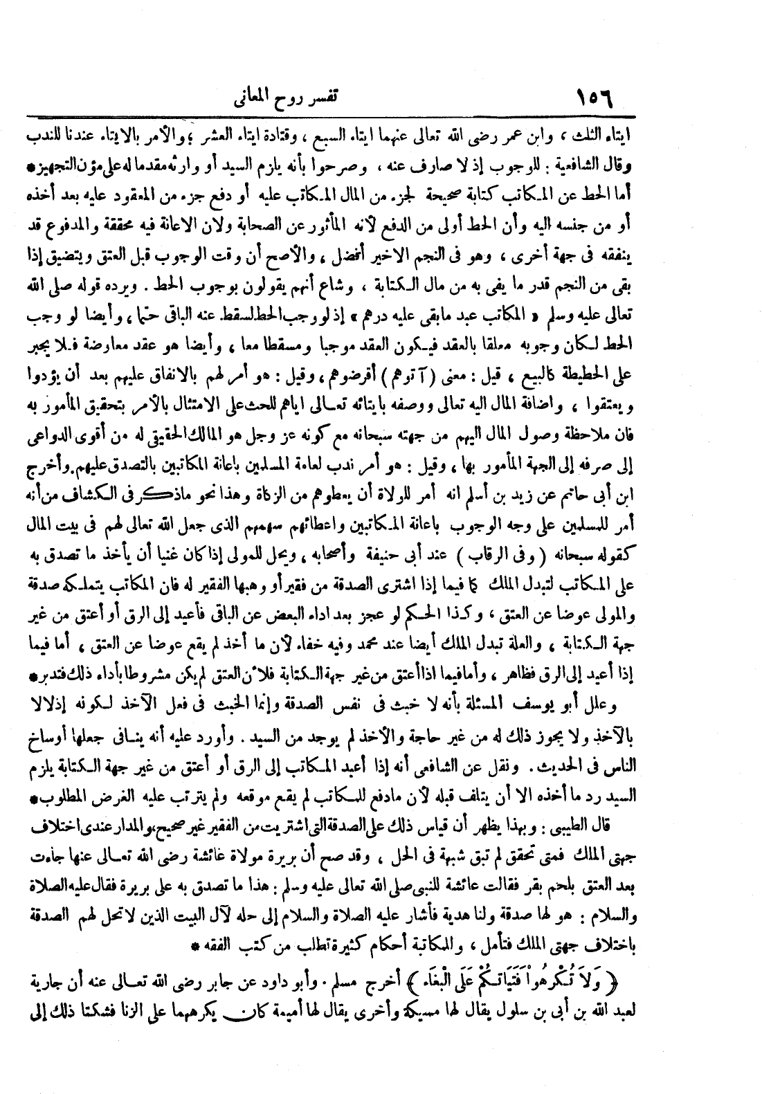 إيتاء الثلث وابن عمر رضي الله تعالى عنهما إيتاء السبع وقتادة إيتاء العشر والأمر بالإيتاء عندنا للندب وقال الشافعية : للوجوب إذ لا صارف عنه وصرحوا بأن يلزم السيد أو وارثه مقدما له على مؤن التجهيز