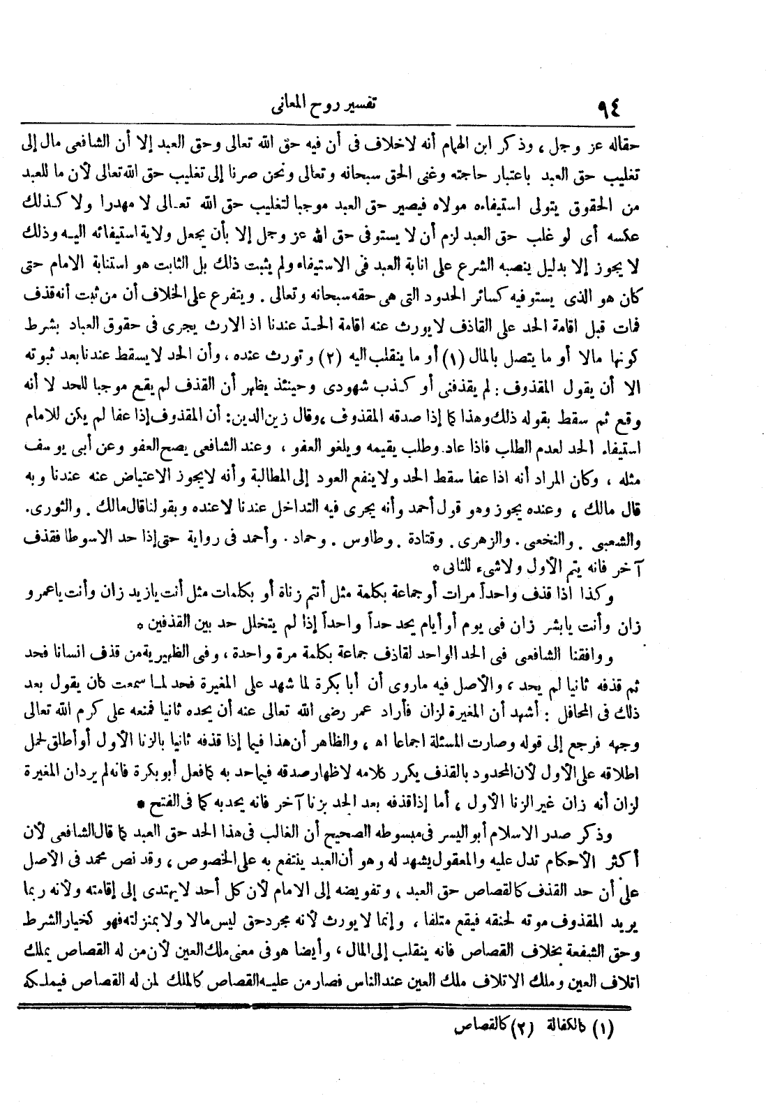 حقا له عز و جل وذكر ابن الهمام أنه لا خلاف في أن فيه حق الله تعالى وحق العبد إلا أن الشافعي مال إلى تغليب حق العبد باعتبار حاجته وغنى الحق سبحانه وتعالى ونحن صرنا إلى تغليب حق الله تعالى لأن ما للعبد من الحقوق يتولى استيفاءه مولاه فيصير حق العبد موجبا لتغليب حق الله تعالى لا مهدرا ولا كذلك عكسه أي لو غلب حق العبد لزم أن يستوفي حق الله عز و جل إلا بأن يجعل ولاية استيفائه إليه وذلك لا يجوز إلا بدليل بنصبه الشرع على إنابة العبد في الإستيفاء ولم يثبت ذلك بل الثابت هو استنابة الإمام حتى كان هو الذي يستوفيه كسائر الحدود التي هي حقه سبحانه وتعالى ويتفرع على الخلاف أن من ثبت أنه قذف فمات قبل إقامة الحد القاذف لا يورث عند إقامة الحد عندنا إذ الإرث يجري في حقوق العباد بشرط كونها مالا أو ما يتصل بالمال أو ينقلب إليه وتورث عنده وأن الحد لا يسقط عندنا بعد ثبوته إلا أن يقول المقذوف : لم يقذفني أو كذب شهودي وحينئذ يظهر أن القذف لم يقع موجبا للحد لا أنه وقع ثم سقط بقوله ذلك وهذا كما إذا صدقه المقذوف وقال زين الدين : أن المقذوف إذا عفا لم يكن للإمام استيفاء الحد لعدم الطلب فإذا عاد وطلب يقيمه ويلغو العفو وعند الشافعي يصح العفو وعن أبي يوسف مثله وكان المراد أنه إذا عفا سقط الحد ولا ينفع العود إلى المطالبة وأنه لا يجوز الإعتياض عنه عندنا وبه قال مالك وعنده يجوز وهو قول أحمد وأنه يجري فيه التداخل عندنا لا عنده وبقولنا قال مالك والثوري والشعبي والنخعي والزهري وقتادة وطاوس وحماد وأحمد في رواية إذا حد الأسوطا فقذف آخر فإنه يتم الأول ولا شيء للثاني