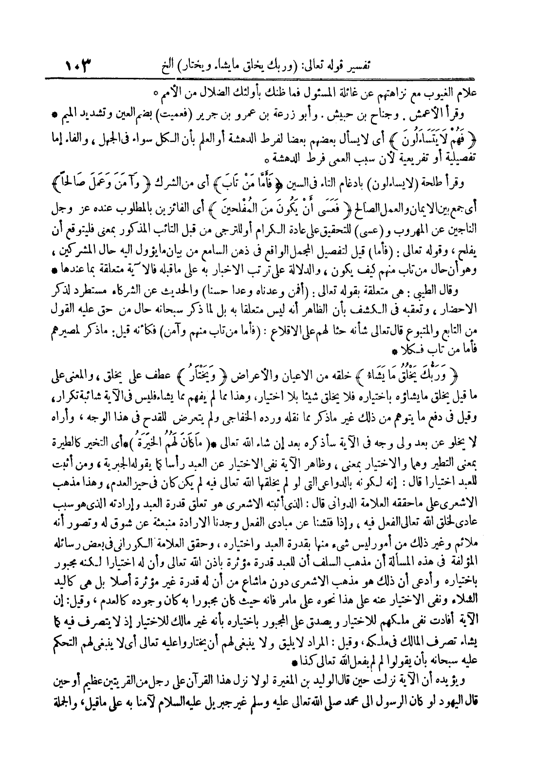 وربك يخلق ما يشاء خلقه من الاعيان والأعراض ويختار عطف على ما يخلق والمعنى على ما قيل يخلق ما يشاؤه باختياره فلا يخلق شيئا بلا اختيار وهذا مما لم يفهم مما يشاء فليس في الآية شائبة تكرار وقيل في دفع ما يتوهم من ذلك غير ما ذكر مما نقله ورده الخفاجي ولم يتعرض للقدح في هذا الوجه وأراه لا يخلو عن بعد ولي وجه في الآية سأذكره بعد إن شاء الله تعالى