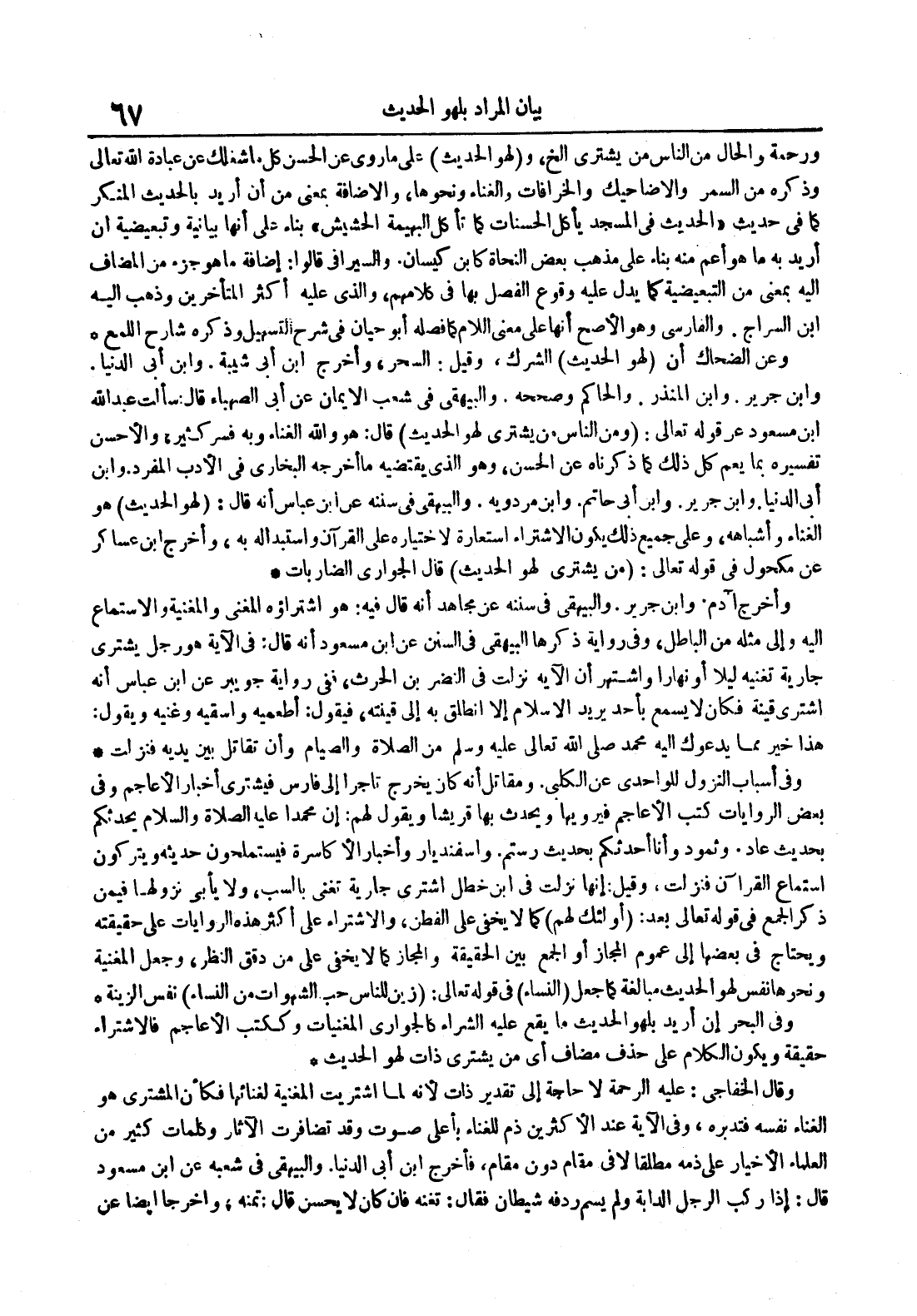 وفي البحر إن أريد بلهو الحديث ما يقع عليه الشراء كالجواري المغنيات وككتب الأعاجم فالإشتراء حقيقة ويكون الكلام على حذف مضاف أي من يشتري ذات لهو الحديث