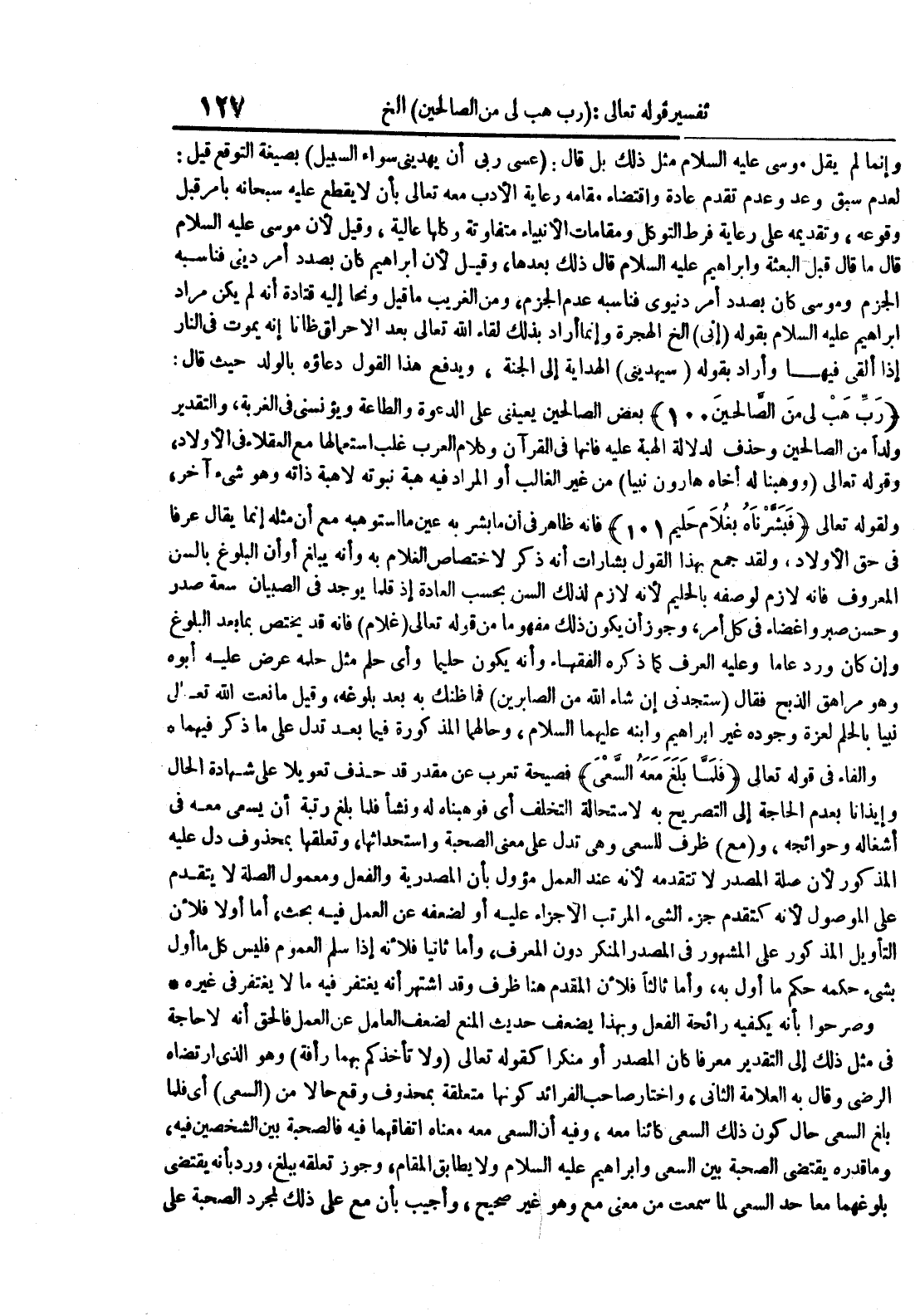 - بعض الصالحين يعينني على الدعوة والطاعة ويؤنسني في الغربة والتقدير ولدا من الصالحين وحذف لدلالة الهبة عليه فإنها في القرآن وكلام العرب غلب استعمالها مع العقلاء في الأولاد وقوله تعالى ووهبنا له أخاه هارون نبيا من غير الغالب أو المراد فيه هبة نبوته لا هبة ذاته وهو شيء آخر ولقوله تعالى فبشرناه بغلام حليم