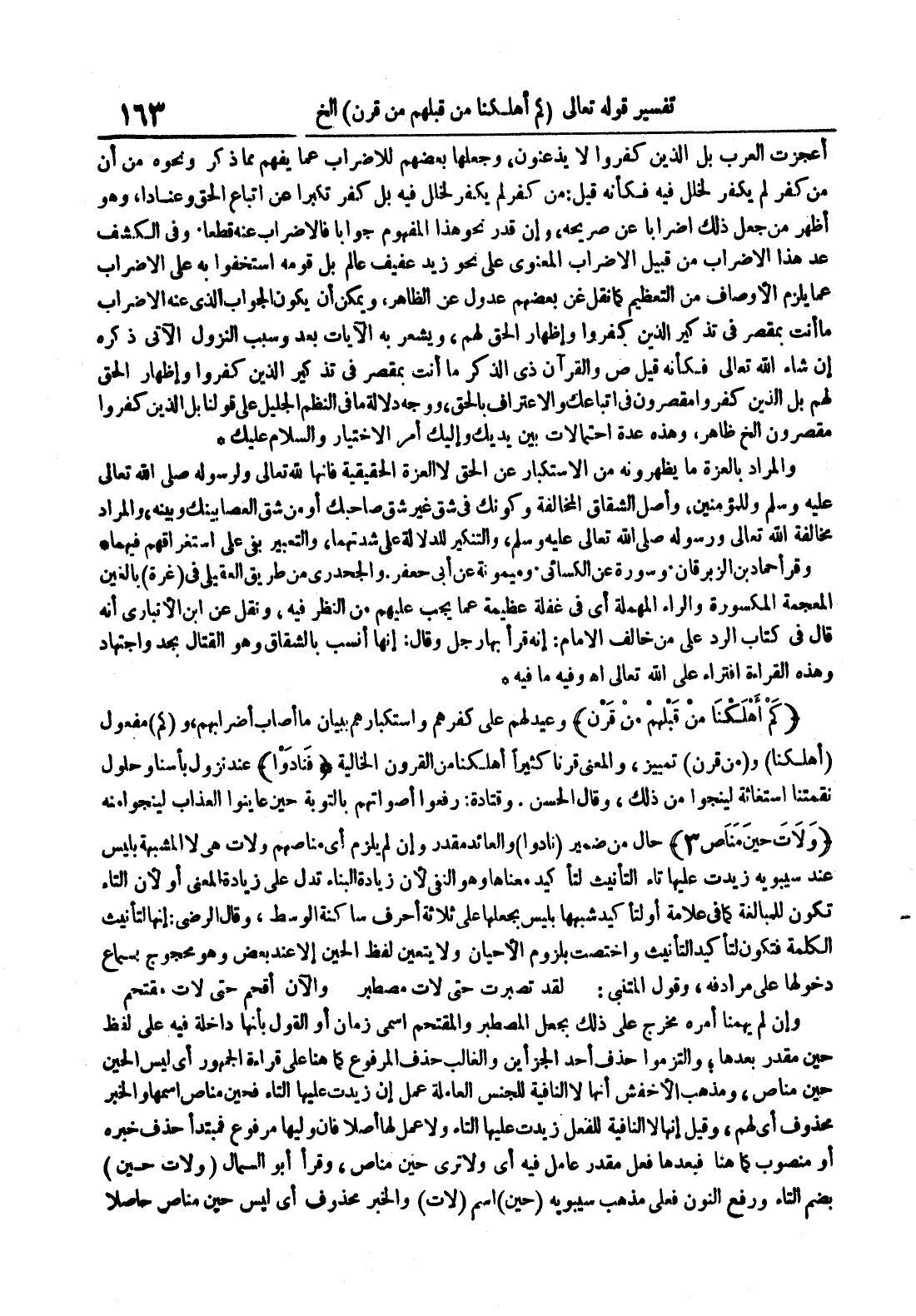 كم أهلكنا من قبلهم من قرن وعيد لهم على كفرهم واستكبارهم ببيان ما أصاب أضرابهم و كم مفعول أهلكنا و من قرن تمييز والمعنى قرنا كثيرا أهلكنا من القرون الخالية فنادوا عند نزول بأسنا وحلول نقمتنا استغاثة لينجوا من ذلك وقال الحسن وقتادة : رفعوا أصواتهم بالتوجه حين عاينوا العذاب لينجوا منه ولات حين مناص
