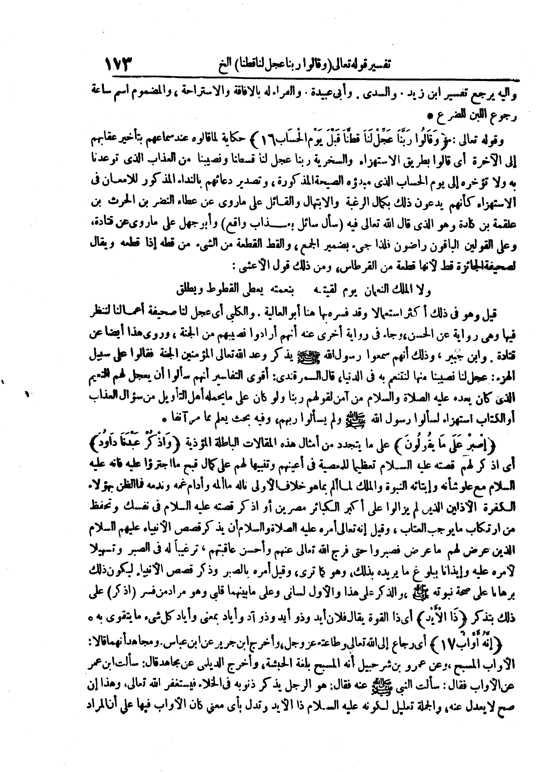 وقوله تعالى : وقالوا ربنا عجل لنا قطنا قبل يوم الحساب