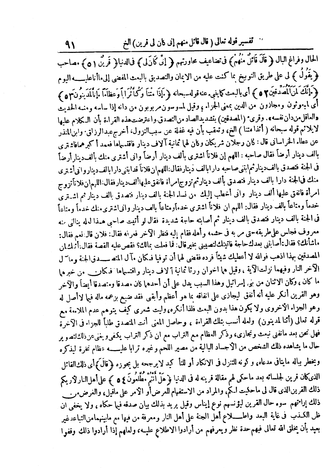الحال وفراغ البال قال قائل منهم في تضاعيف محاورتهم إنى كان لي في الدنيا قرين