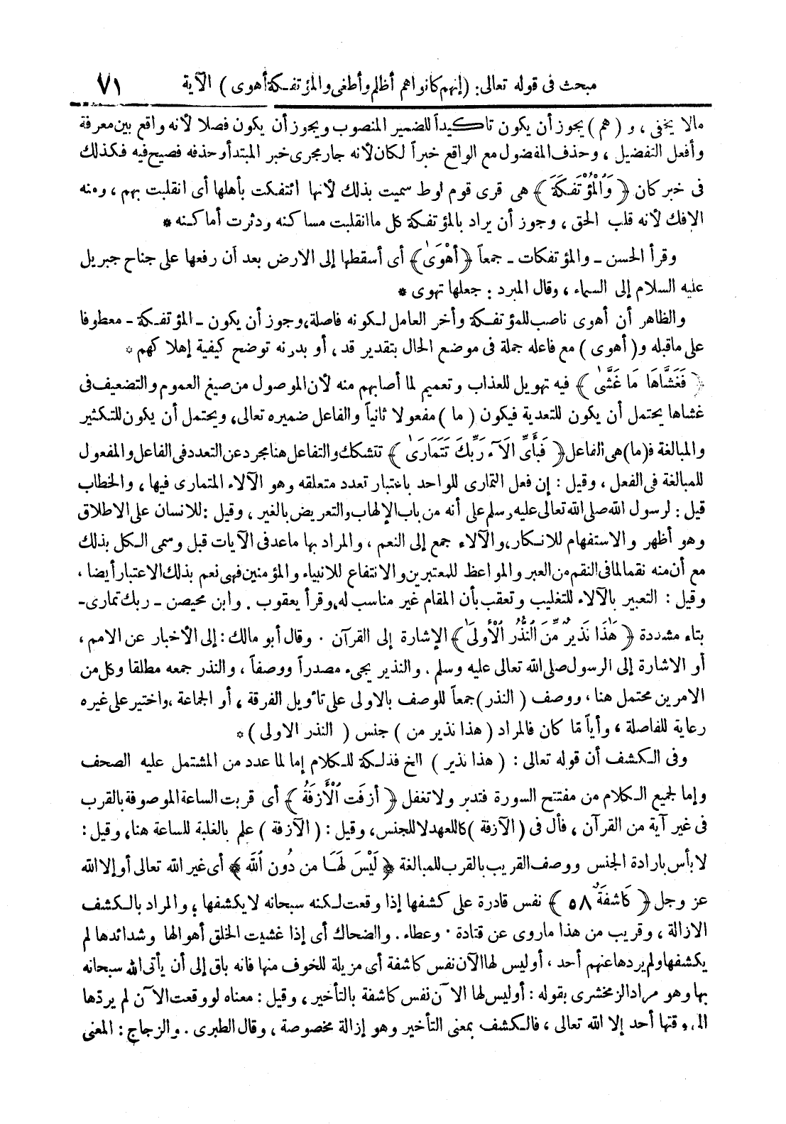 والظاهر أن أهوى ناصب للمؤتفكة وأخر العامل لكونه فاصلة وجوز أن يكون المؤتفكة معطوفا على ما قبله و أهوى مع فاعله جملة في موضع الحال بتقدير قد أو بدونه توضح كيفية إهلاكهم
