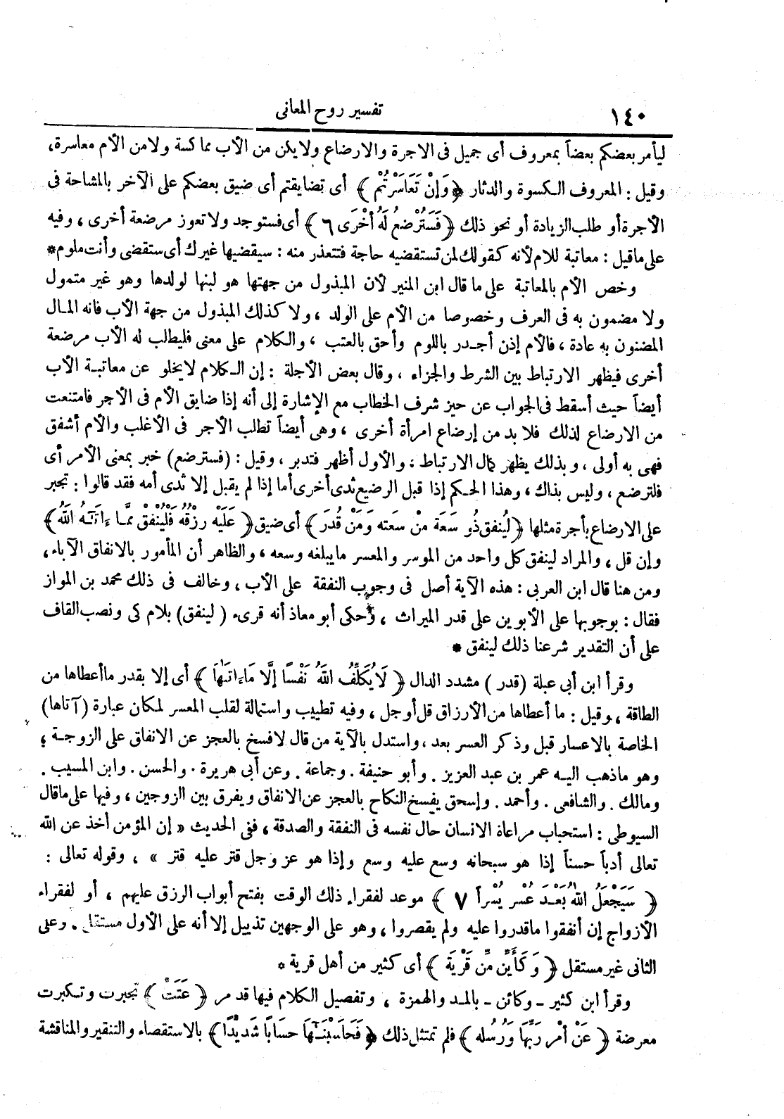 وخص الأم بالمعاتبة على ما قال ابن المنير لأن المبذول من جهتها هو لبنها لولدها وهو غير متعول ولا مضمون به في العرف وخصوصا من الأم على الولد ولا كذلك المبذول من جهة الأب فإنه المال المضنون به عادة فالأم إذن أجدر باللوم وأحق بالعتب والكلام على معنى فيطلب له الأب مرضعة أخرى فيظهر الأرتباط بين الشرط والجزاء وقال بعض الأجلة : إن الكلام لا يخلو عن معاتبة الأب أيضا حيث أسقط في الجواب عن حيز شرف الخطاب مع الإشارة إلى أنه إذا ضايق الم في الأجر فامتنعت من الإرضاع لذلك فلا بد من إرضاع امرأة أخرى وهي أيضا تطلب الأجر في الأغلب والأم أشفق فهي به أولى وبذلك يظهر كمال الأرتباط والأول أظهر فتدبر وقيل : فسترضع خبر بمعنى الأمر أي فلترضع وليس بذاك وهذا الحكم غذا قبل الرضيع ثذي أخرى أما إذالم يقبل إلا ثدي أمه فقد قالوا : تجبر على الإرضاع بأجر مثلها لينفق ذو سعة من سعته ومن قدر أي ضيق عليه رزقه فلينفق مما آتاه الله وإن قل والمراد لينفق كل واحد من الموسر والمعسر ما يبلغه وسعه والظاهر أن المأمور بالإنفاق الآباء ومن هنا قال ابن العربي : هذه الآية أصل في وجوب النفقة على الأب وخالف في ذلك محمكد بن المواز فقال : بوجوبها على الأبوين على قدر الميراث وحكى أبو معاذ أنه قريء لينفق بلام كي ونصب القاف على أن التقدير شرعنا ذلك لينفق