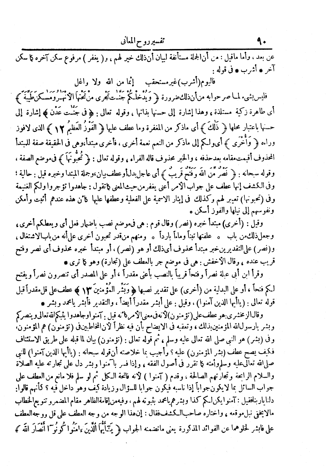 ومنهم من قدرتحبون أخرى على أنه من باب الأشتغال و نصر على التقديرينخبر مبتدأ محذوف أي ذلك أو هو نصر أو مبتدأخبره محذوف أي نصر وفتح قريبعنده وقال الأخفش : هي في موضع جر بالعطف على تجارة وهو كما ترى