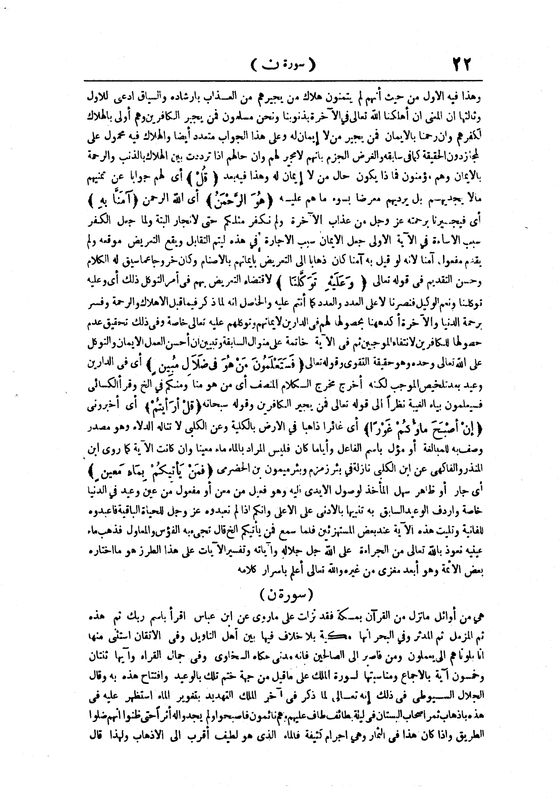 هي من أوائل ما نزل من القرآن بمكة فقد نزلت على ما روي عن ابن عباس اقرأ باسم ربك ثم هذه ثم المزمل ثم المدثر وفي البحر أنها مكية بلا خلاف فيها بين أهل التأويل وفي الإتقان استثنى منها إنا بلوناهم إلى يعملون ومن فاصبر إلى الصالحين فإنه مدني حكاه السخاوي وفي جمال القراء وآيها ثنتان وخمسون آية بالإجماع ومناسبتها لسورة الملك على ما قيل من جهة ختم تلك بالوعيد وافتتاح هذه به وقال الجلال السيوطي في ذلك إنه تعالى لما ذكر في آخر الملك التهديد بتغوير الماء استظهر عليه في هذه بإذهاب ثمر أصحاب البستان في ليلة بطائف طاف عليهم وهم نائمون فأصبحوا ولم يجدوا له أثرا حتى ظنوا أنهم ضلوا الطريق وإذا كان هذا في الثمار وهي أجرام كثيفة فالماء الذي هو لطيف أقرب إلى الإذهاب ولهذا قال