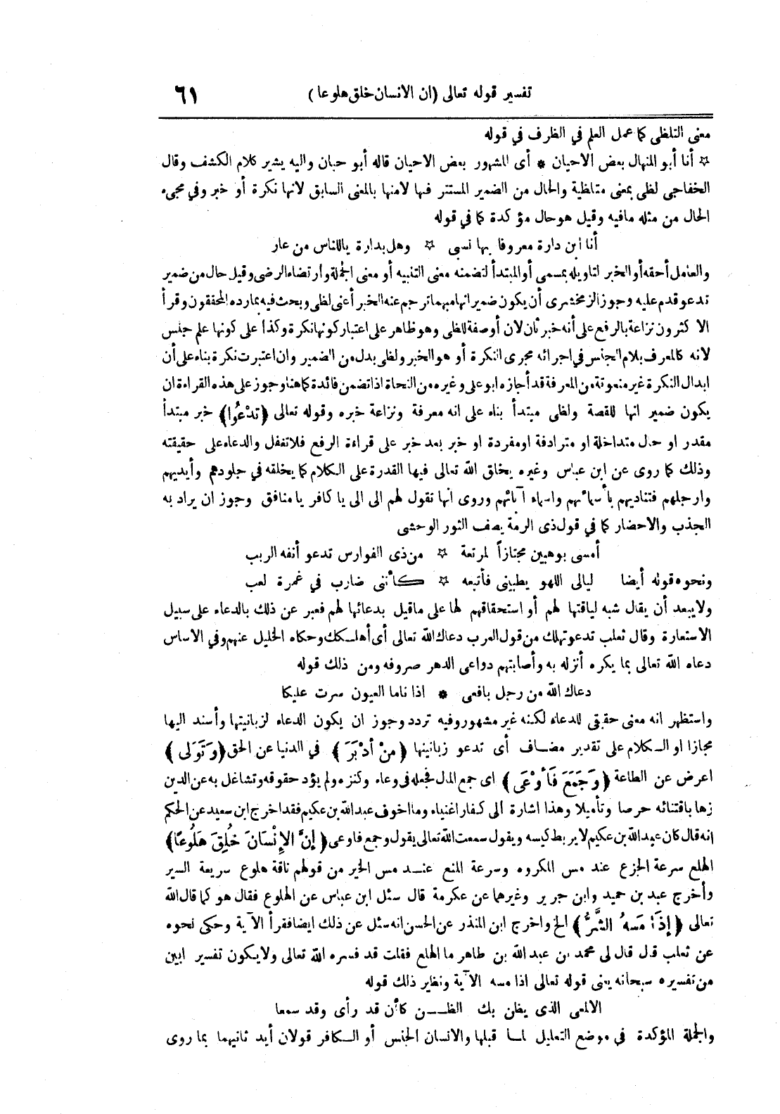 وأخرج عبد بن حميد وابن جرير وغيرهما عن عكرمة قال سئل ابن عباس عن الهلوع فقال هو كما قال الله تعالى إذا مسه الشر الخ وأخرج ابن المنذر عن الحسن أنه سئل عن ذلك أيضا فقرأ الآية وحكى نحوه عن ثعلب قال قال لي محمد بن عبد الله بن طاهر ما الهلع فقلت قد فسره الله تعالى ولا يكون تفسير أبين من تفسيره سبحانه يعني قوله تعالى إذا مسه الآية ونظير ذلك قوله