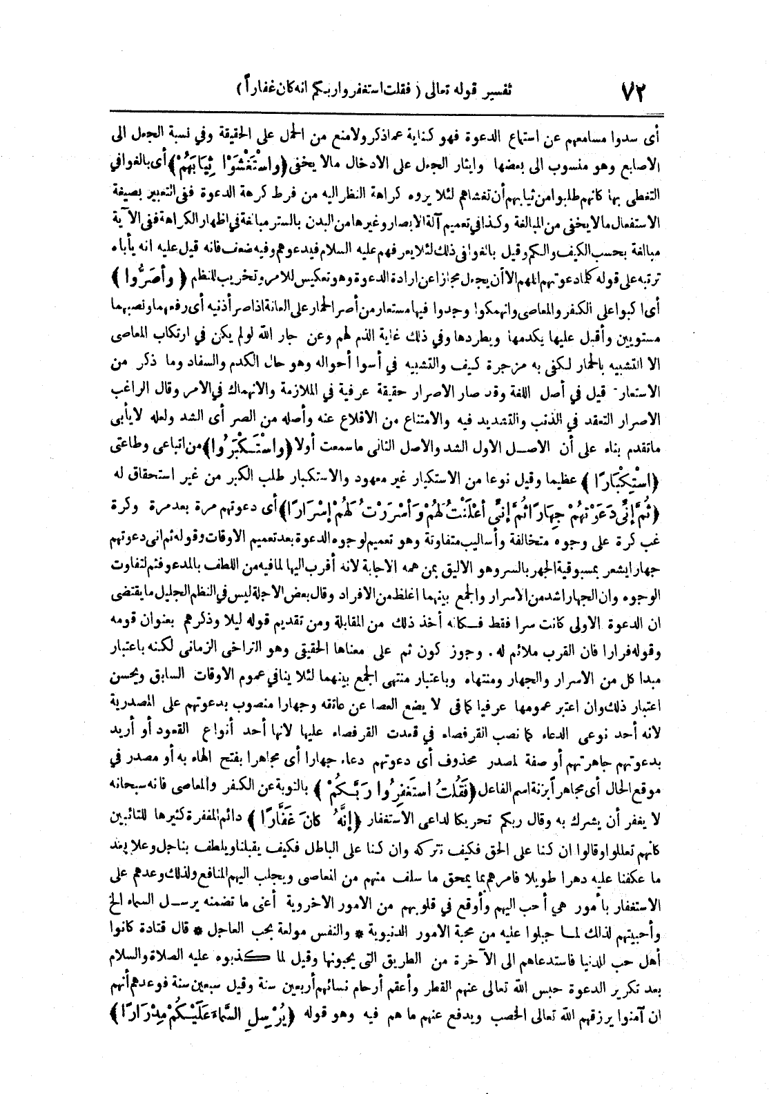 فقلت استغفروا ربكم بالتوبة عن الكفر والمعاصي فإنه سبحانه لا يغفر أن يشرك به وقال ربكم تحريكا لداعي الإستغفار