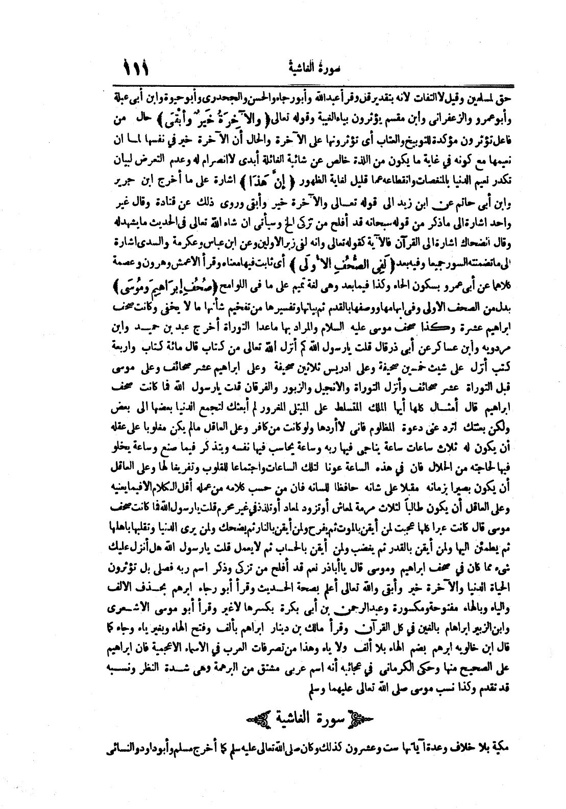 مكية بلا خلاف وعدة آياتها ست وعشرون كذلك وكان صلى الله تعالى عليه وسلم كما أخرج مسلم داود والنسائي