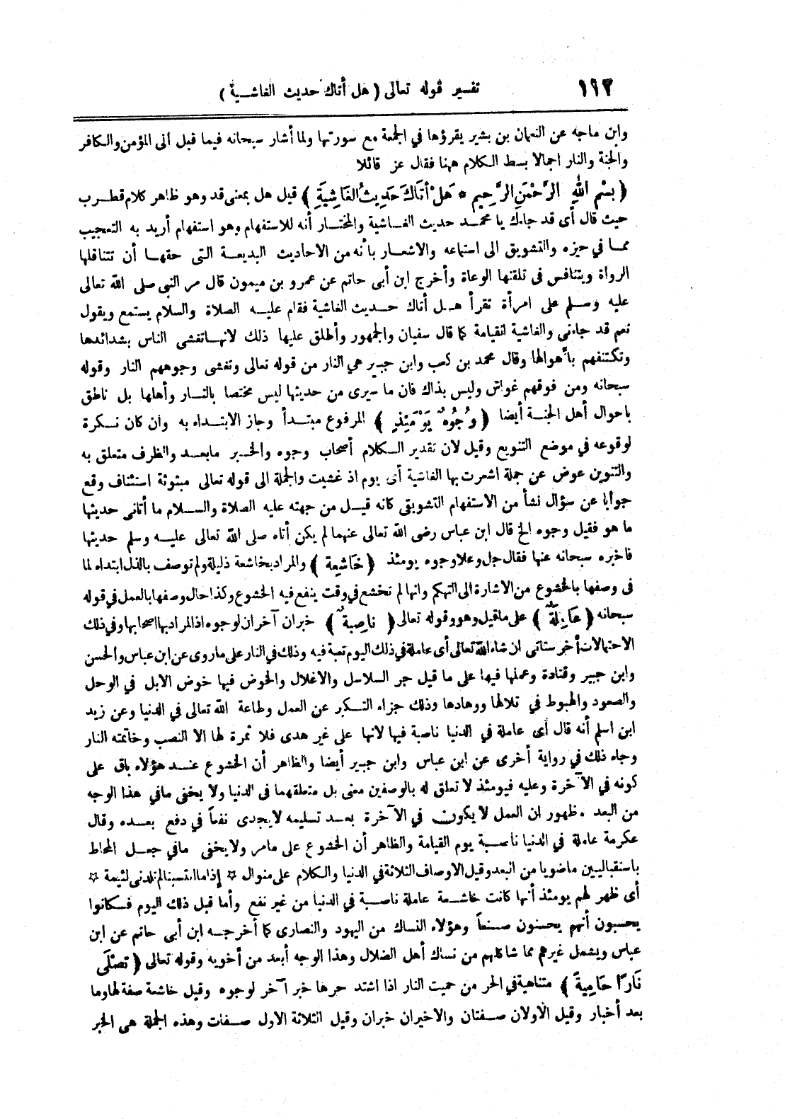 وابن ماجه عن النعمان بن بشير يقرؤها في الجمعة مع سورتها ولما أشار سبحانه فيما قبل إلى المؤمن والكافر والجنة والنار إجمالا بسط الكلام ههنا فقال عز قائلا بسم الله الرحمن الرحيم