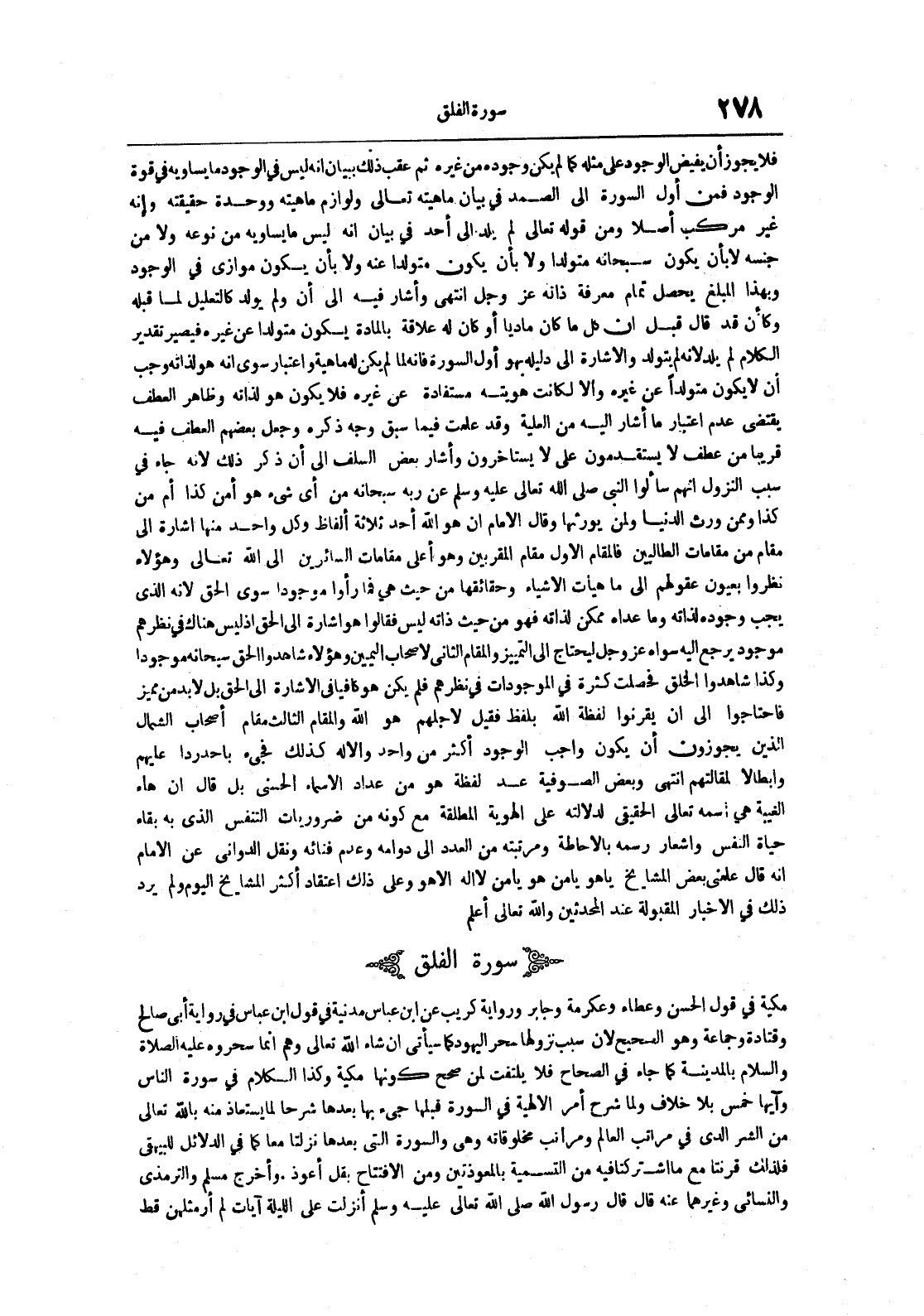 مكية فى قول الحسن وعطاء وعكرمة وجابر ورواية كريب عن ابن عباس مدنية فى قول ابن عباس فى رواية أبى صالح وقتادة وهو الصحيح لان سبب نزولها سحر اليهود كما سيأتى ان شاء الله تعالى وهم انما سحروه عليه الصلاة و السلام بالمدينة كما جاء فى الصحاح فلا يلتفت لمن صحح كونها مكية وكذا فى الكلام فى سورة الناس وآيها الخمس بلا خلاف ولما شرح أمر الاهية فى السورة قبلها جىء بها بعدها شرحا لما يستعاذ منه بالله تعالى من الشر الذى فى مراتب العالم ومراتب مخلوقاته وهى السورة التى بعدها نزلتا معا كما فى الدلائل للبيهقى فلذلك قرنتا مع اشتركتا فيه من التسمية بالمعوذتين ومن الافتتاح بقل أعوذ 0 وأخرج مسلم والترمذى والنسائى وغيرهما عنه قال قال رسول الله صالى تعالى عليه وسلم أنزلت على الليلة آيات لم أرى مثلهن قط