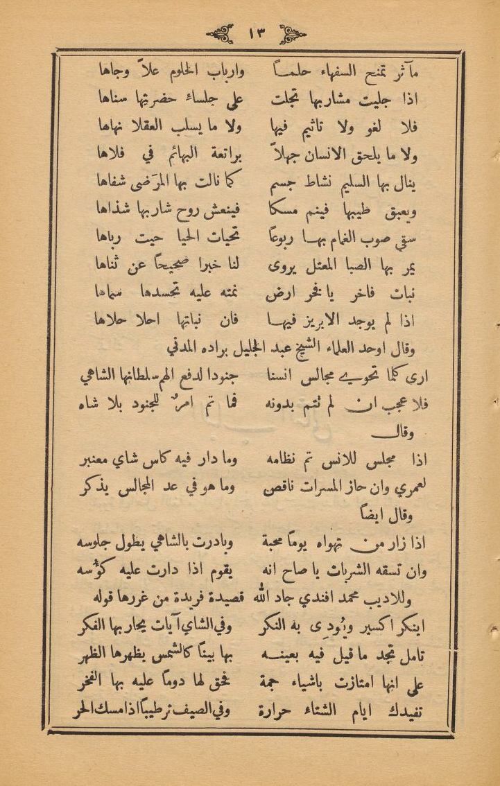 اذا مجلس للانس تم نظامه ... وما دار فيه كاس شاي معنبر