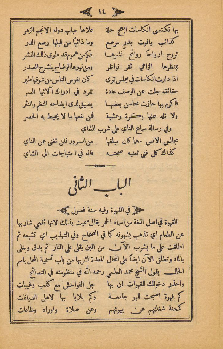 كم قهوة اصبحت للهو جامعة ... وكم بلايا بها لاهل الديانات