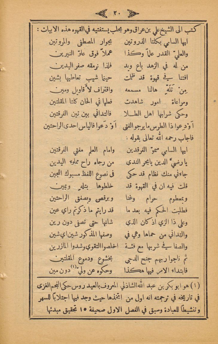 كتب الى الشيخ علي بن عراق وهو بحلب يستفتيه في القهوه هذه الابيات: