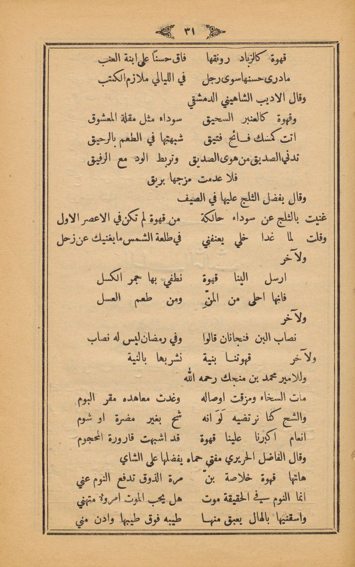 وقهوة كالعنبر السحيق ... سوداء مثل مقلة المعشوق