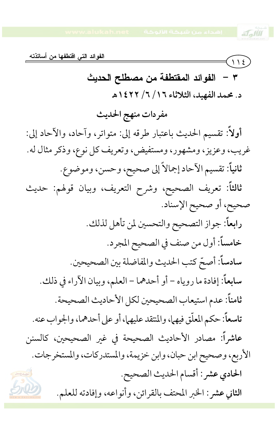 [توفي الابن عبد الرحمن رحمه الله قبل إكمال شرح هذه الفوائد في مصطلح الحديث، عوّضه الله خيراً مما فاته وغفر له].