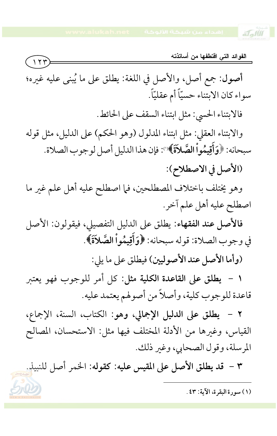 4 - قد يطلق الأصل على الراجح مثل: الأصل في الكلام الحقيقة، أي الراجح في الكلام الحقيقة دون المجاز.