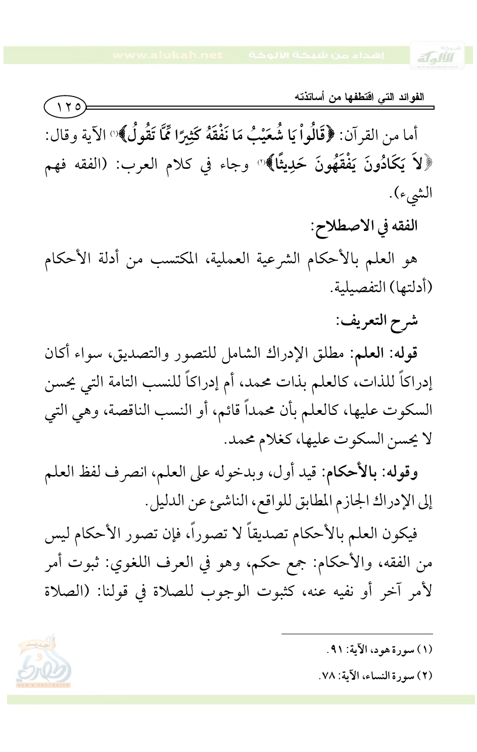 وقوله: المكتسب: قيد رابع، وهو صفة للعلم؛ ولذلك يقرأ بالرفع، ولا يصح أن يكون مجروراً على أنه صفة للأحكام.