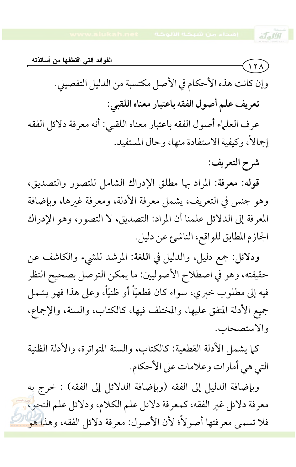 وقوله: وكيفية الاستفادة منها: مجرور بالعطف على دلائل، فيكون المعنى: معرفة دلائل الفقه، ومعرفة كيفية الاستفادة منها.