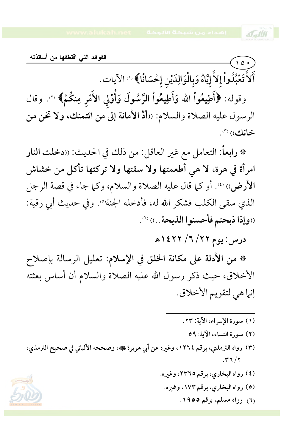 (¬1) رواه أبو داود، برقم 4799، والترمذي، برقم 2002، عن أبي الدرداء - رضي الله عنه -. وصححه الألباني في السلسلة الصحيحة، برقم 876.