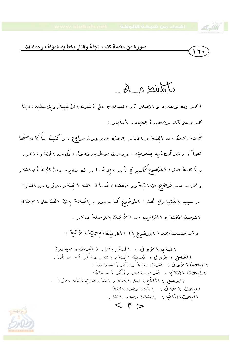 فهذه رسالة في ((الجنة والنار من الكتاب والسنة))، كتبها الابن: الشاب، البار، الصالح عبد الرحمن بن سعيد بن علي بن وهف القحطاني رحمه الله تعالى، وهي رسالة نافعة جداً بيَّن فيها رحمه الله تعالى: مفهوم الجنة والنار، وإثبات وجود الجنة والنار، وأنهما موجودتان الآن، ومكان الجنة، ومكان النار، وأسماء الجنة، وأسماء النار، ونعيم الجنة النفسي، ونعيمها الحسّي، وذكر من هذا النعيم: إحلال رضوان الله على أهل الجنة، فلا يسخط عليهم أبداً، وذكر عدد أنهار الجنة وصفاتها، والحور العين وصفاتهن، ومساكن أهل الجنة: من الخيام، والغرف، والقصور، وصفاتها، وطعام أهل الجنة، وشرابهم، وصفات أهل الجنة، [جعله من أهلها].