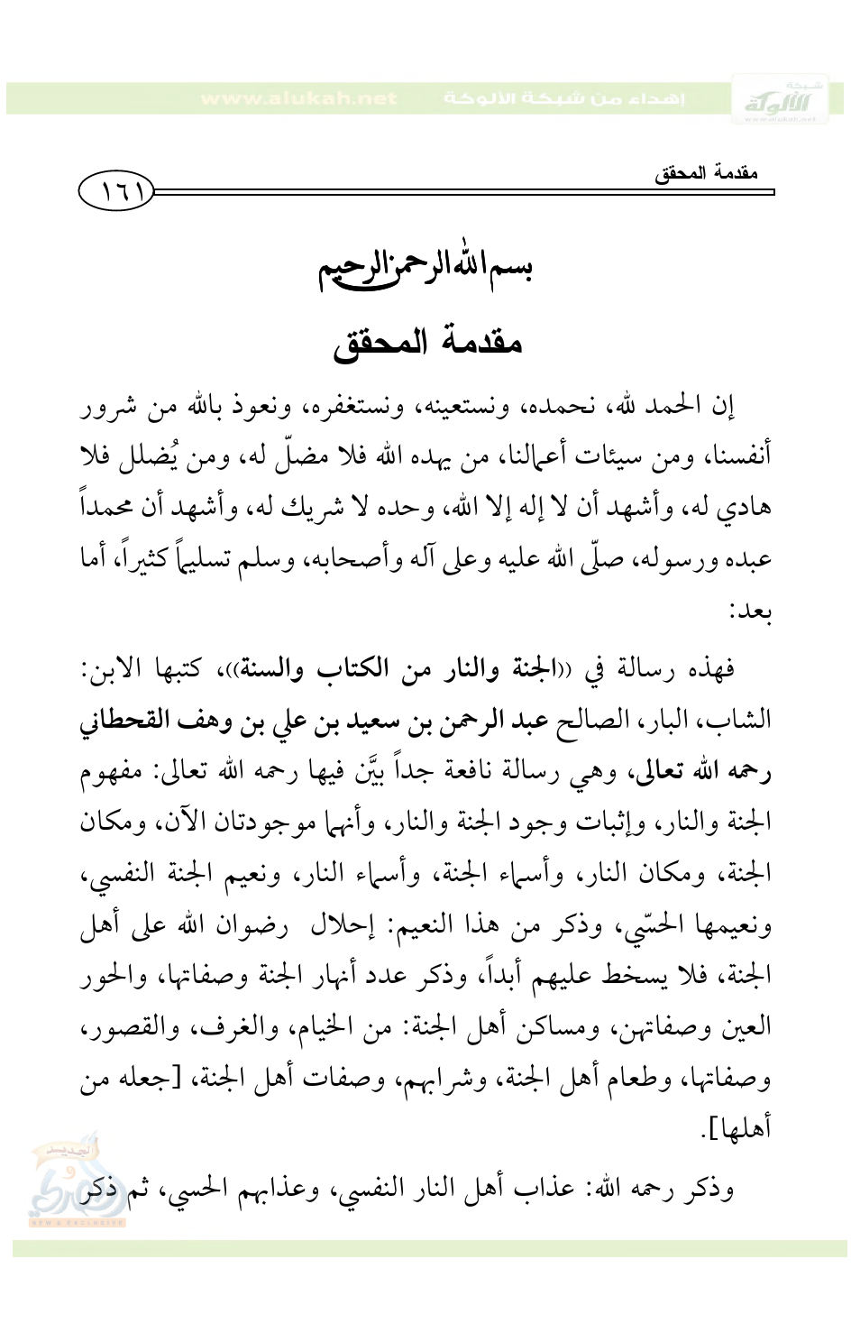 وعندما رأيت هذا الترتيب الجميل، والاختصار المفيد؛ ولأهمية الموضوع أحببت أن أعتني بإخراج هذه الرسالة التي أسأل الله بوجهه الكريم أن ينفع بها الابن عبد الرحمن، وأن يجعلها له من العمل الذي لا ينقطع، وأن يبلّغه منازل الشهداء؛ فإنه ـ الكريم، الرؤوف الرحيم، ذو الفضل والجود والإحسان والامتنان.