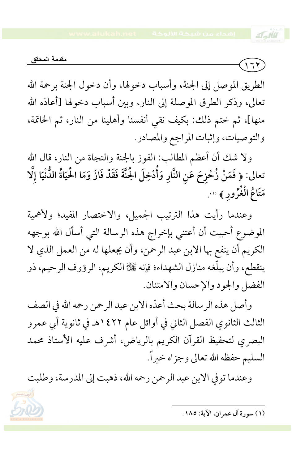 1 - قمت بمطابقة الرسالة على أصلها المخطوط بخط الابن عبد الرحمن رحمه الله تعالى.