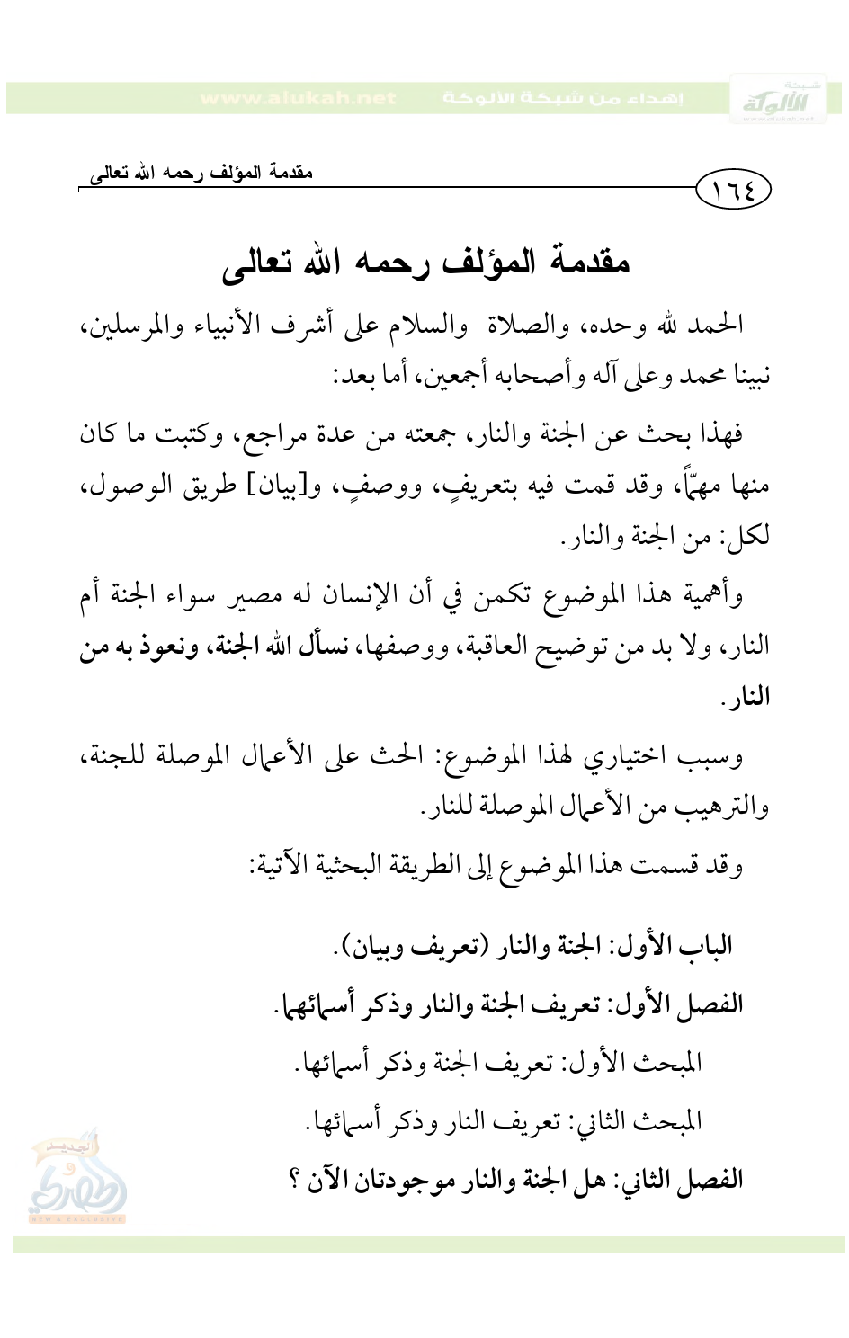 الباب الثاني: نعيم أهل الجنة وعذاب أهل النار.