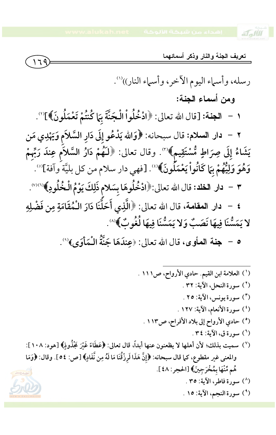 8 - جنات النعيم، قال الله تعالى: {إِنَّ الَّذِينَ آمَنُوا وَعَمِلُوا الصَّالِحَاتِ لَهُمْ جَنَّاتُ النَّعِيمِ} (¬5) (¬6).