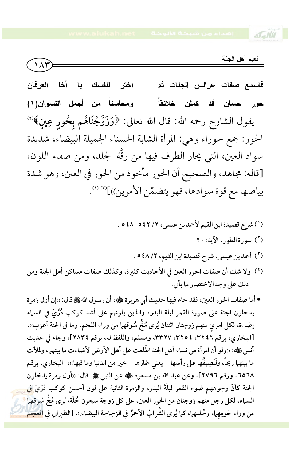 (¬2) الترمذي، كتاب صفة الجنة، باب ما جاء في صفة الجنة ونعيمها، برقم 2526، وأحمد، 2/ 305، وصححه الألباني في صحيح الترمذي، 2/ 311.