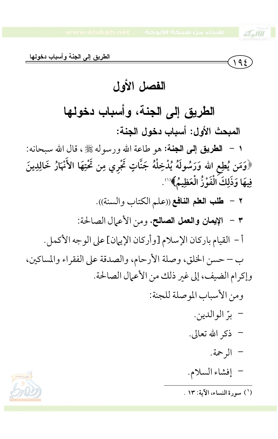 الفصل الأول: الطريق إلى الجنة، وأسباب دخولها.