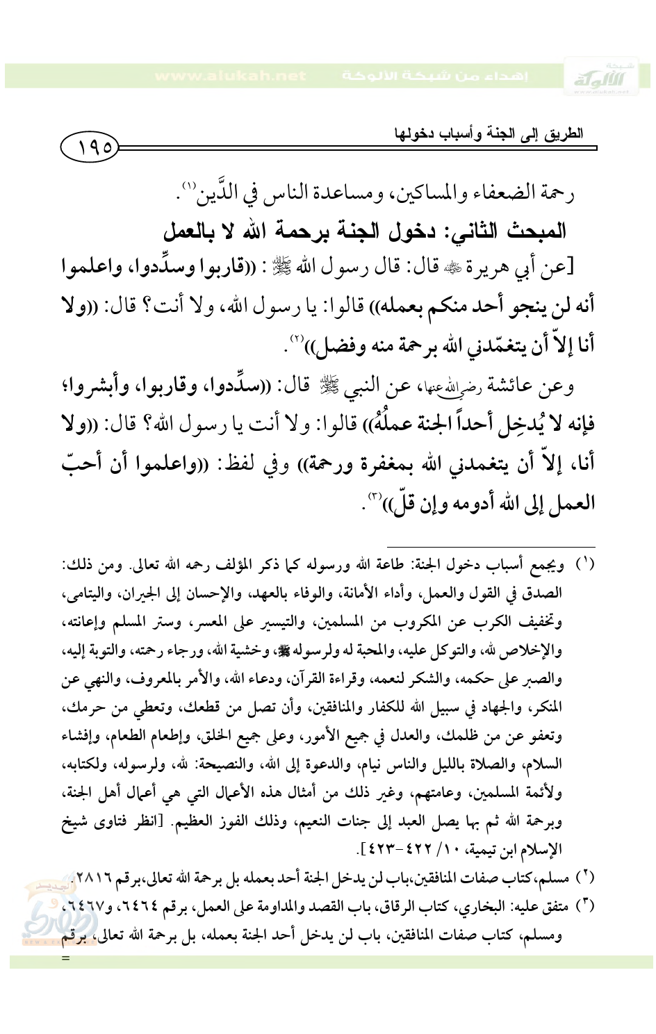المبحث الأول: أسباب دخول الجنة: