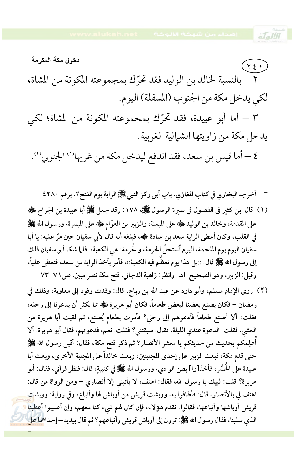 الفصل الأول: ترتيبات العسكر الإسلامي في الدخول.