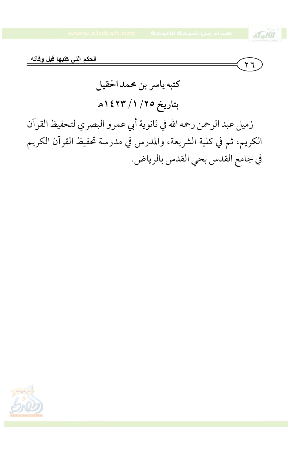 كتبه ياسر بن محمد الحقيل