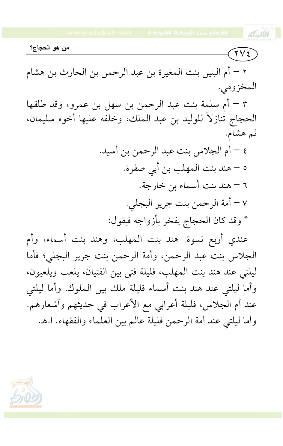 * وجدُّ الحجاج الأعلى وفد على رسول الله - صلى الله عليه وسلم -.