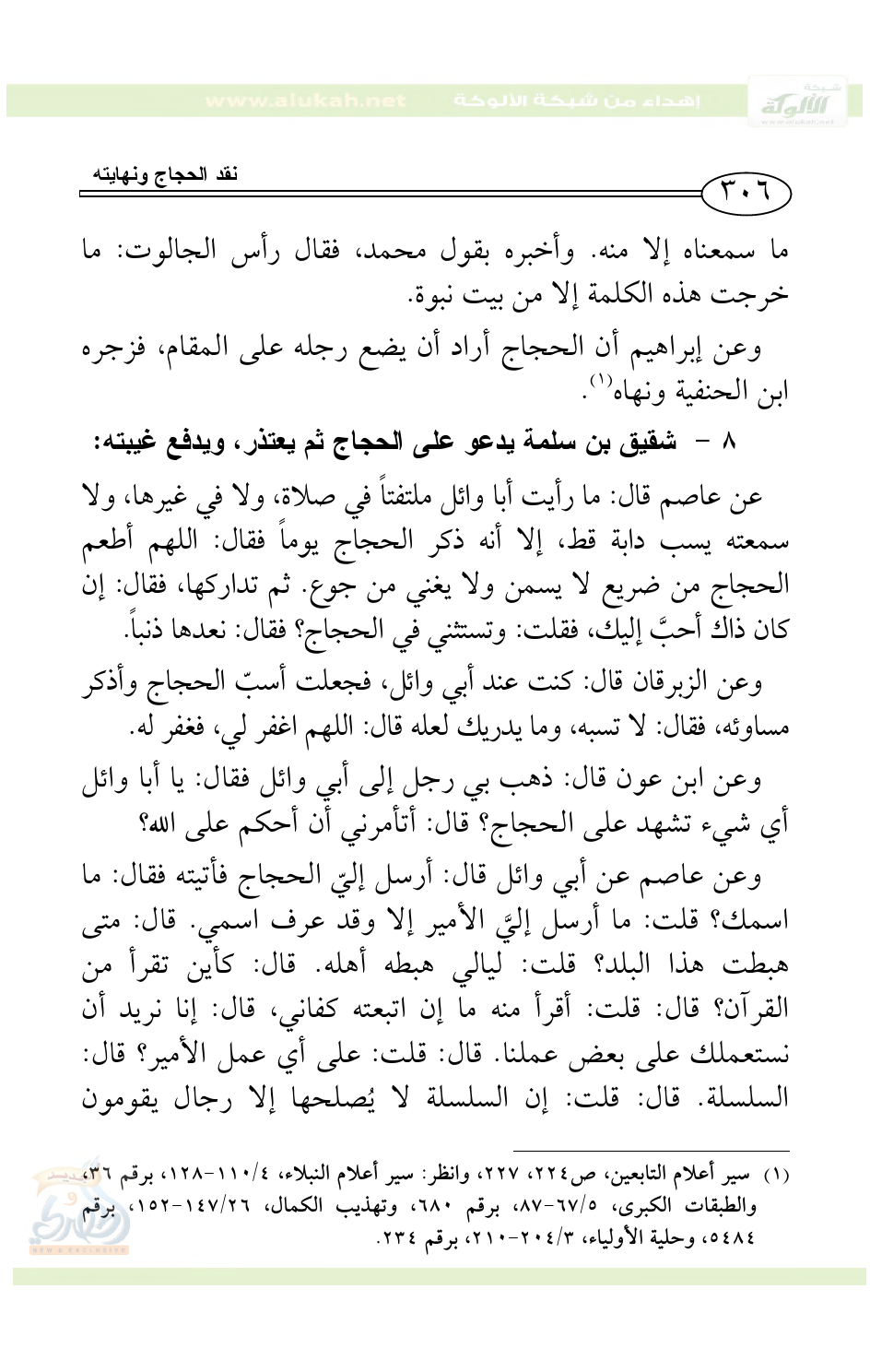 يجتمع الناس على أحدهما، وأنا رجل ليس عندي خلاف، لما رأيت الناس اختلفوا اعتزلتهم حتى يجتمعوا، فأويت إلى أعظم بلاد الله حرمة، يأمن فيه الطير، فأساء ابن الزبير جواري، فتحولت إلى الشام، فكره عبد الملك قربي، فتحوّلت إلى الحرم، فإن يقتل ابن الزبير، ويجتمع الناس على عبد الملك أبايعك، فأبى الحجاج أن يرضى بذلك منه حتى يبايع لعبد الملك، فأبى ذلك ابن الحنفية، وأبى الحجاج أن يقرّه على ذلك، فلم يزل محمد يدافعه حتى قتل ابن الزبير.