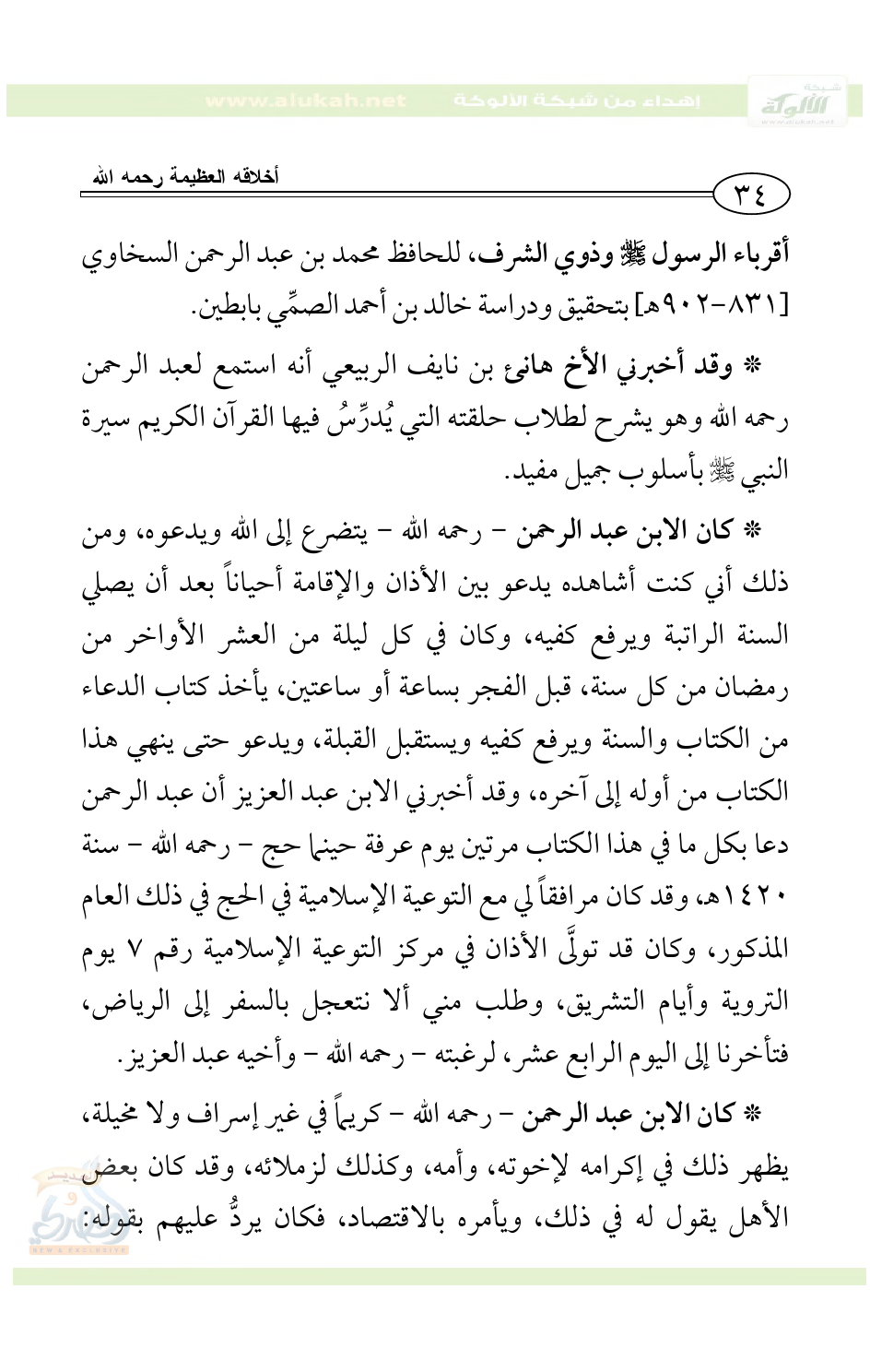 أقرباء الرسول - صلى الله عليه وسلم - وذوي الشرف، للحافظ محمد بن عبد الرحمن السخاوي [831 - 902هـ] بتحقيق ودراسة خالد بن أحمد الصمِّي بابطين.