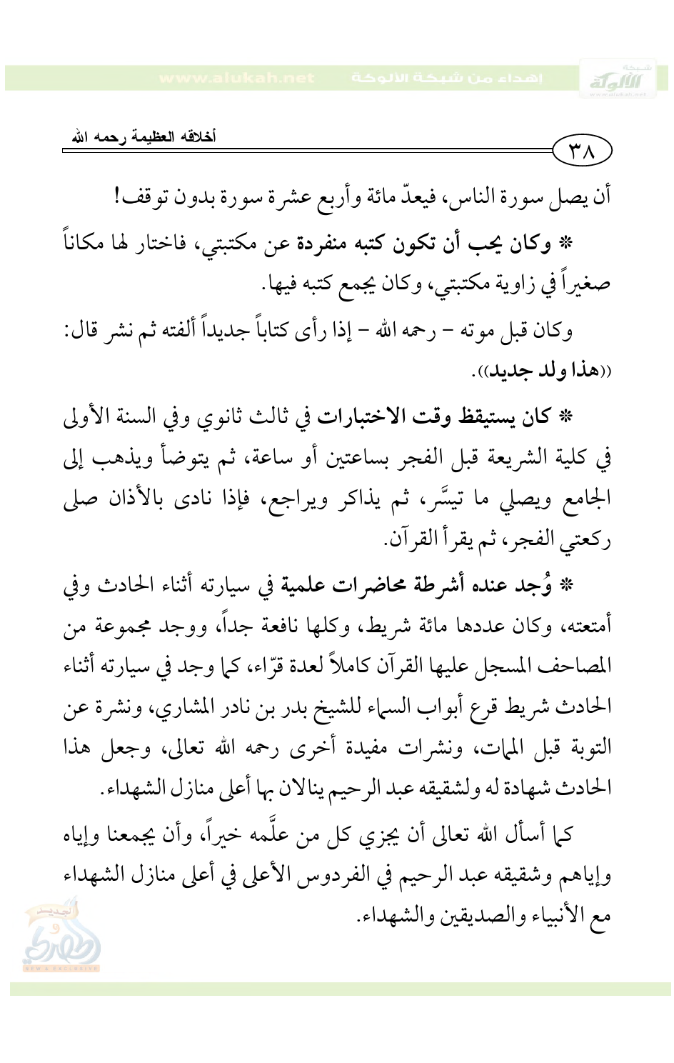 وكان قبل موته - رحمه الله - إذا رأى كتاباً جديداً ألفته ثم نشر قال: ((هذا ولد جديد)).
